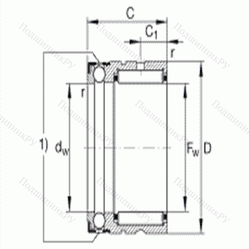 2) - / Присоединительные размерыпружинное стопорное кольцо на наружном кольце
