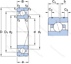 | Номинальная динамическая грузоподъёмность | C | 42.3 | kN | |